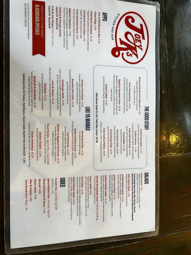 Joey K's Restaurant & Bar located in New Orleans offers a casual Southern dining experience with a variety of options. With a menu featuring Southern classics like Red Beans and Rice, Seafood Gumbo, and Shrimp Magazine, each dish is crafted to perfection. The standout dish, Eggplant Napoleon, is a must-try, as reviewers rave about its exquisite flavor profile. The restaurant's home-style American Creole cuisine, friendly service, and vibrant atmosphere make it a go-to spot for locals and visitors alike. Whether you opt for the Fried Green Tomatoes Poboy or the Trout Tchoupitoulas, Joey K's never fails to impress with its flavorful offerings. Don't miss out on their delicious cocktails and desserts, such as the bread pudding with vanilla ice cream. Experience the best of New Orleans cuisine at Joey K's Restaurant & Bar.